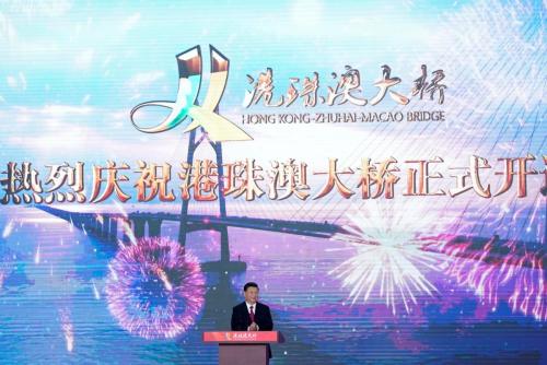 Церемония открытия моста прошла в Чжухае при участии лидера КНР Си Цзиньпина. На церемонии присутствовали около 700 гостей. По словам вице-премьера Хань Чжэна, мост будет способствовать интеграции Гонконга и Макао в континентальный Китай, что поспособствует экономическому развитию региона.