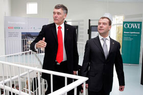 Президент Медведев посетил первое в Дании общественное здание с нейтральным уровнем выбросов углекислого газа – здание будущего, созданного из имеющихся уже сегодня компонентов.