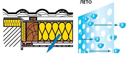 В летний период поры мембраны увеличиваются, и влага выводится из строительной конструкции в 10-15 раз быстрее, чем в случае использования традиционной пароизоляции. Sd фактор VARIO существенно снижается и соответствует всего 200 мм неподвижного воздуха. Такая мембрана летом является высушивающим материалом, обеспечивая комфортный микроклимат в помещении.