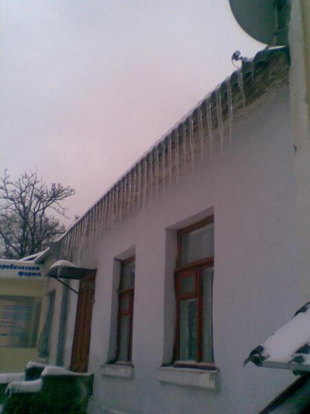 Я вчера вот такую нереальную картину увидел: Сталагмиты на кровле. Такой упадет и никакой снегозадержатель не поможет :(