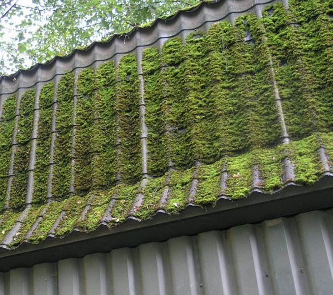Говорят, что на крышах покрытых битумной черепицей и находящихся в лесных массивах нарастает мох.