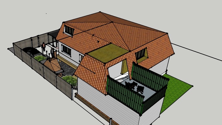 Здравствуйте! Есть дом из бревен р-р 8х12 м. Пора менять крышу из шифера. Накидал в скечапе вот такой вариант, но не могу на пристрое (где выход на терасу) придумать переход. Планирую гибкую кровлю с подложкой из ОСП. Вопросы еще будут появляться, так как сейчас занимаюсь проектом. Надеюсь у опытных людей не займет много времени ответить на некоторые вопросы. Основное пытаюсь изучить сам.
