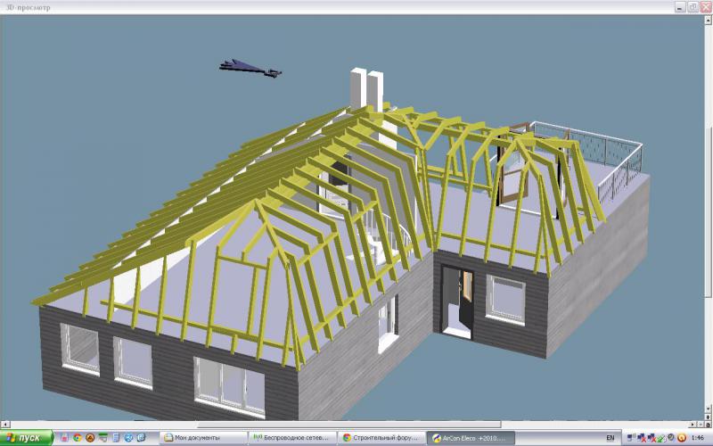 Новый проект будет такой. Стропильная конечно тут неправильно построилась. Кое где кое-что надо добавлять. Уважаемые -подскажите где усилить? Может фермы? Комнату нехочу разбивать.