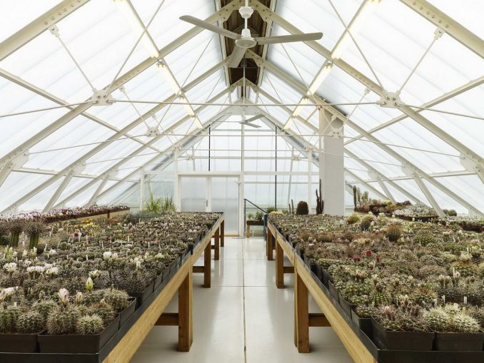 Весь второй этаж дома состоит из теплицы для кактусов, которая закрыта крышей из полого поликарбоната. Площадь теплицы примерно равна площади самого дома. Спроектировал такой дом архитектор Давид Казицки (David Kazicky).
