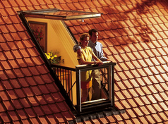Балкон в мансарде без надстроек? Новое уникальное окно ВЕЛЮКС GDL Cabrio монтируется в кровлю, как любое другое мансардное окно, а при открывании превращается в настоящий балкон в мансарде. Окно-балкон GDL Cabrio может устанавливаться в комбинациях, позволяя создавать самые впечатляющие интерьерные и экстерьерные решения. Окно GDL Cabrio монтируется в кровлю, как любое другое окно ВЕЛЮКС. Конструкция состоит из двух элементов. Верхняя часть открывается по верхней оси до 45° с помощью нижней ручки, а также по средней оси. Нижняя часть раскладывается наружу, при этом по бокам автоматически выдвигаются специальные перила. Клапан-форточка и съемный моющийся фильтр в верхней части балкона позволяют проветривать комнату в любую погоду. Конструкция окна и оклада, а также несложная технология монтажа гарантируют полную герметичность. Окно-балкон GDL Cabrio производится в одном размере: ширина - 94 см, общая высота – 252 см. Стеклопакеты верхнего и нижнего элементов – энергосберегающие с закаленным внешним стеклом. Внутреннее стекло нижнего элемента - ударопрочное. Суммарная площадь остекления – 1,59 м2. Уникальная разработка ВЕЛЮКС, не имеющая аналогов в мире.