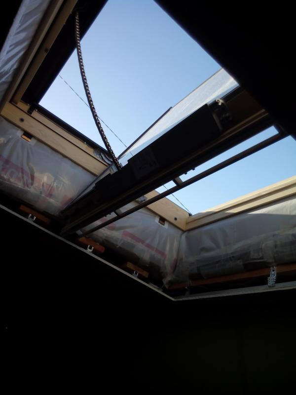 Недавно смонтировали систему дымоудаления которая состояла из трех мансардных окон с двигателем, двух блоков управления, двух кнопок под стеклом и двух датчиков дыма. Такая система не каждый день встречается поэтому выкладываю фото. Если есть вопросы постараюсь ответить.