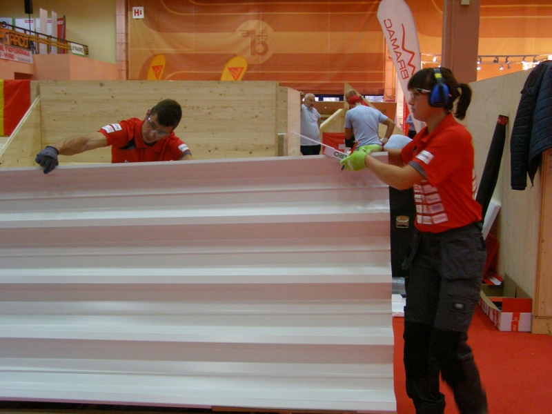 Во-вторых, впервые среди конкурсантов в этом году была представлена кровельщица! Виржиния Питерс (Virginie Pieters) в составе бельгийской сборной работала на макете по фальцевой технологии, ничуть не уступая своим коллегам-мужчинам. Вполне вероятно, что в будущем конкурсанток станет гораздо больше: в кровельных школах многих европейских стран, прежде всего – Германии, проходят обучение по профессии «кровельщик» немало девушек.
