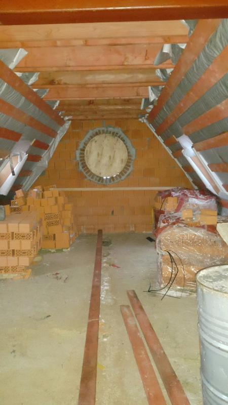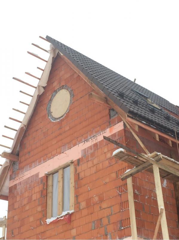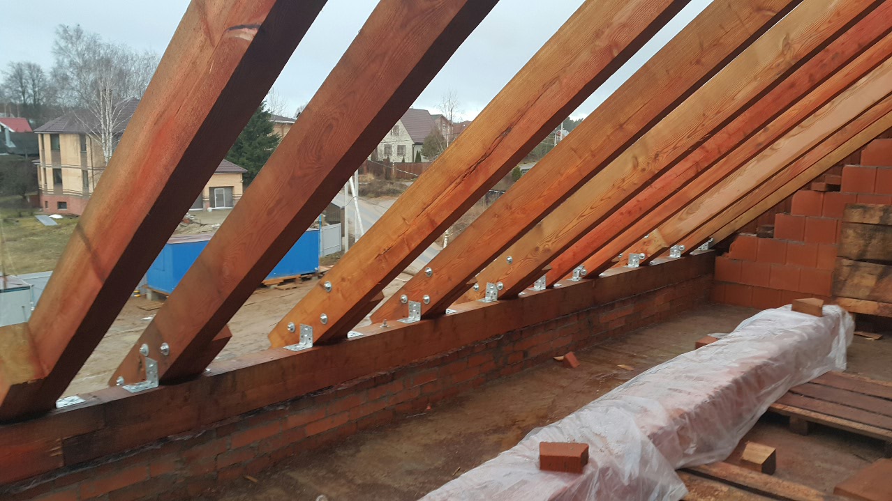 Строю с фирмой с августа 2015 года. На данный момент возникли проблемы с мансардой. Кровельные работы производили в декабре -январе. С наступлением весны на внутренней обрешетки мансарды появилась плесень. Материал обрешетки сосна септировался огнеобиозащитой розовой , но видать что-то пошло не так. Было принято решение снять обрешетку и заменить . Я решил на всякий случай использовать лиственницу . Из лиственницы у меня выполненный и вся стропильная система, не знаю на сколько это правильно но это моя идея.