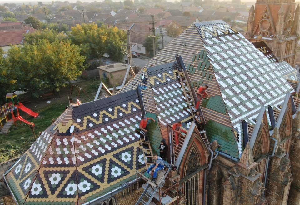 Керамическая черепица по-прежнему является эталоном архитектурной эстетики и стиля, который выдержал испытание временем. Необычное решение применили румынские кровельщики на своем объекте. Creaton Весы Noblesse глазурь-18x38 Населенный Пункт Jimbolia, Jud Timis, Румыния Католическая Церковь Футок Срок завершения реконструкции кровли 15.12.2019