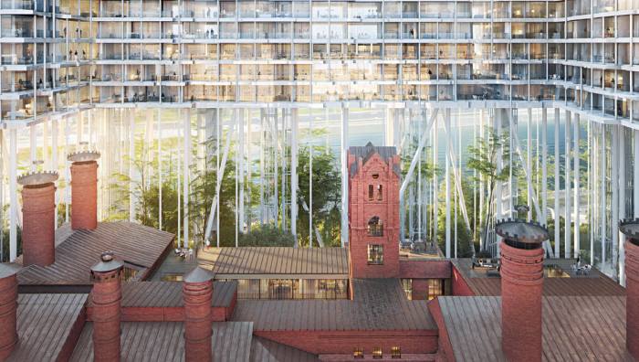 В столице представили проект застройки территории Бадаевского пивоваренного завода на набережной Тараса Шевченко. Новые здания планируется возвести над старыми цехами завода — на 35-метровых колоннах. Для разработки концепции инвестор проекта компания Capital Group привлекла швейцарское архитектурное бюро Herzog & de Meuron, лауреата Притцкеровской премии. Так швейцарские архитекторы решили сразу три задачи: