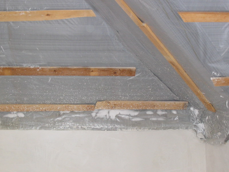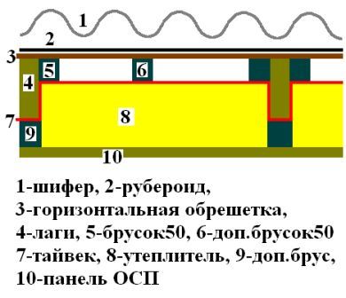 Ранее предполагал крышу (шифер и рубероид на обрешетке) не трогать, а снять внутреннюю вагонку, с отступом 50 мм обить тайвеком, далее утеплитель URSA или ROCKWOOL, отделка плитами ОСВ (которые вроде заодно выполняют роль пароизоляции). Или может быть до плит ОСВ поставить пароизоляцию с алюминиевой пленкой внутрь помещения? Тогда надо обрешетку между ними?
