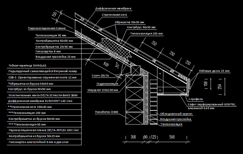 LEX, без обид, мне понравились ваши цветные отрисовки кровельных пирогов скатных кровель на тетрадных листках. Нашел на одном из ваших узлов неточности и даже небольшую ошибочку Представляю наши новые обновленно-отрисованные узлы для наших объектов, которые сейчас в работе. 1) 30 градусов с прямым карнизом. 2) 45 градусов с косым карнизом