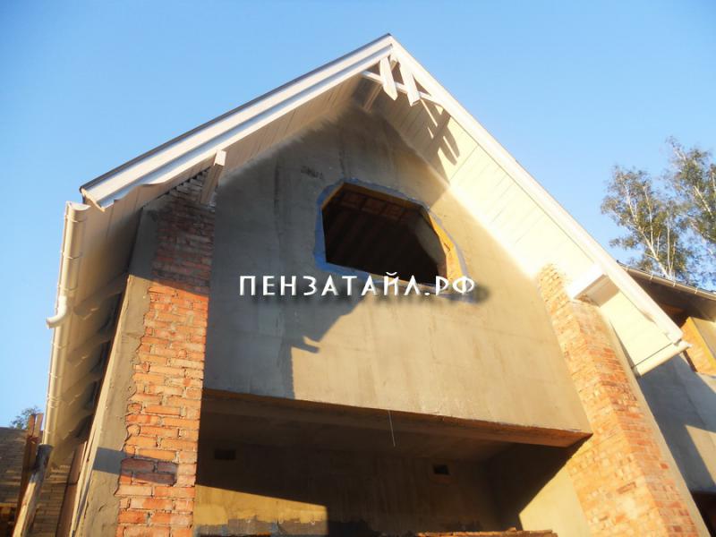 Мембрана обрывается на середине глубины карнизного свеса. Воздух попадает через перфорированные алюминиевые софиты. Данную ересь считаю правильной, к тому же она присутствует в техальбоме ТехноНИКОЛЬ. В своих учебных центрах ТЕПЕРЬ УЖЕ они рекомендуют что так будет намного лучше, чем доводить мембрану до конца кобылки, при этом воздух будет поступать уже только через подкровельное пространство (через вентсетку закрепленную на контрбрус).... потом монтируется водосточный желоб, выпадает снег... и вентиляции вообще нет