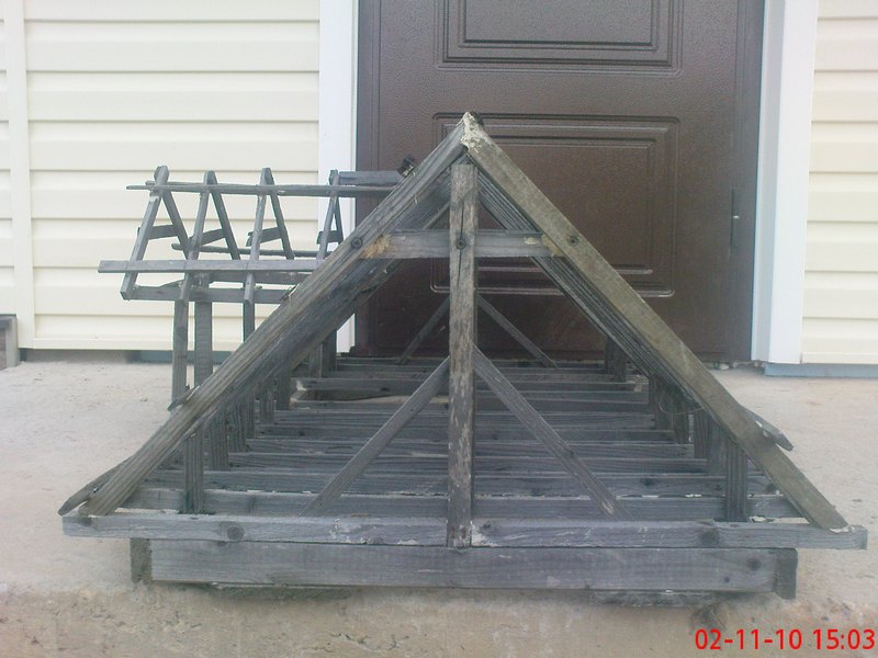 Добрый вечер, По возможности хотелось бы конечно все убрать. Но понимаю риск велик. А так обычная стропиловка. Висячие стропила. сверху стянуты косынками. Чуть ниже ригеля. Класический треугольник с подпорами.И соответсвенно в качестве обрешетки шаговой черепковый брусок. Прикрепляю фото макет 1*100.Это у знакомого родственник сделал модель видимо чтобы знания обновить в голове. Он же и делал крышу.