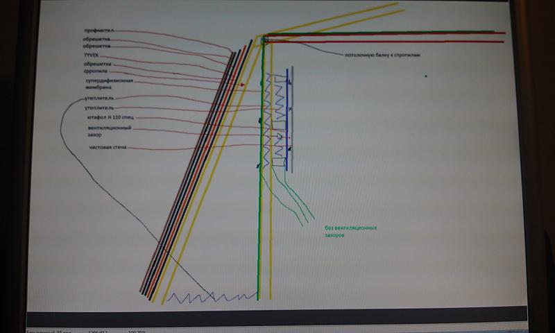 2.Нужно, ремарку про ТУВЕК не понял... 3.НЕТ. 4.Пленку прошить рейками, любыми, с шагом 300-400... 5.Деревяшки, затяжки, конструкция крепления потолка - лучше такие же, как и стропила... Перегородки по правилам нельзя использовать как несущий элемент... ГКЛ лучше не зашивать, т.к. деревянные конструкции дают усадку как бы они не были подготовлены, лучше зашить любой вагонкой, особенно потолки... 6.Дрова обрабатываются защитами до изготовления деталей... Если уж пришлось , то на время прикрыть чем либо проблемный материал или конструкции... 7.Общую конструкцию можно значительно усовершенствовать и при этом существенно увеличить площадь, - радвинуть верт. стойки, т.е. они станут короче, но при этом надо доработать жесткость конструкции, вариантов - море... |