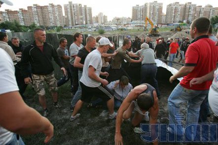 Причиной приостановки строительства стал инцидент, который произошел 18 сентября 2011 года. Инцидент заключался в том, что начался конфликт между строителями компании и жителями домов, которые находятся вблизи от стройплощадки. Когда приехала милиция, жители утверждали, что «Киевгорстрой» не имеет их согласия в разрешительных документах. Глава Киевской горгосадминистрации А. Попов пообещал разобраться в сложившимся несогласии и восстановить справедливость. Позже при проверке всех документов на строительство, выяснилось, что некоторые участки, а именно 72,73,74 даны холдингу в аренду на пять лет, и они вправе строить дома с объектами обслуживания. Тем более, как стало известно, данные участки были предназначены для жилой и общественной застройки. Как сообщает президент строительной компании Михаил Голица, на сегодняшний день работы не ведутся, так как нет определённой договорённости с жителями. Рассматривается вариант строительства ТЦ, около которого должны быть выстроены объекты социальной инфраструктуры. Уже в сентябре этого года компания должна предоставить переделанный проект. Президент строительного холдинга отметил, что стоимость объекта будет снижена, но точной суммы пока никто не знает. Также стоит отметить, что в перечень объектов, которые будут строиться возле ТЦ, будут входить дворец бракосочетания и спортзал. Последний раз редактировалось tonika130787; 06.09.2011 в 01:07. Причина: не вставила картинки |