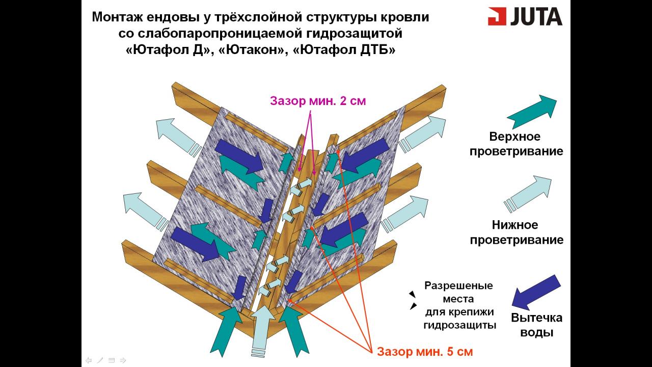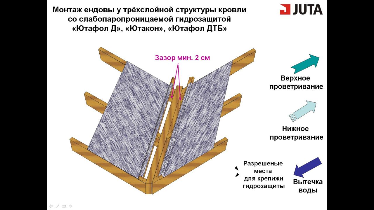 Гидру укладываем как на 4-6 фото, правда ендовой контробрешетки не ставим в силу вышеуказанной конструкции. Может не так делаем?