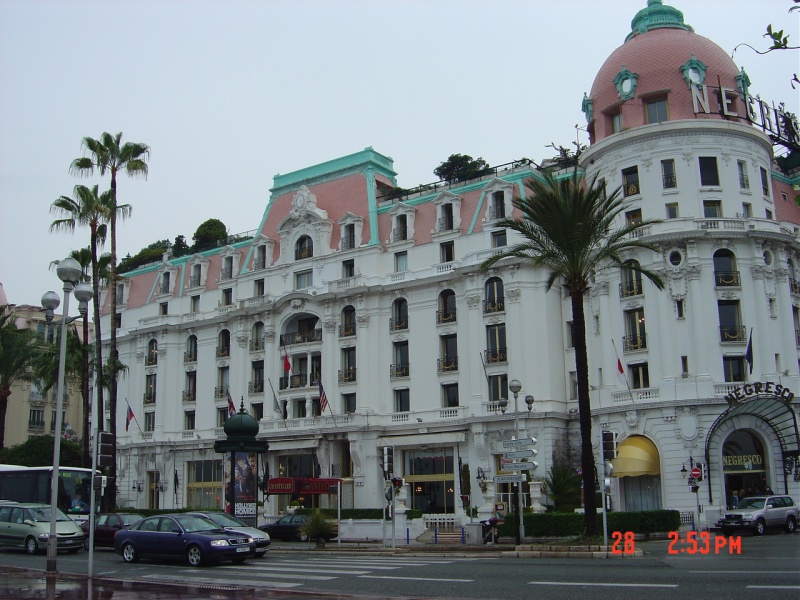 Интересует, чем покрыта? Это - легендарный отель Negresco является одним из самых знаменитых зданий Ниццы и одним из немногочисленных частных дворцов мира. Вот уже около столетия огромный розовый купол здания отеля возвышается над знаменитой Английской Набережной и Бухтой Ангелов. Отель расположен в центре города на Английской набережной в 3 мин ходьбы от казино. Имеется собственный платный галечный пляж через дорогу. Отель является любимым местом отдыха знаменитостей и коронованных особ. официальный сайт: http://www.hotel-negresco-nice.com/