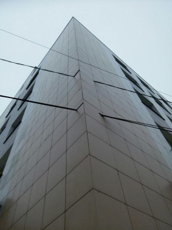 В Твери вмуровали в стену линию электропередач при отделке фасада здания Тверской государственной медицинской академии (подсмотрено в ФБ)