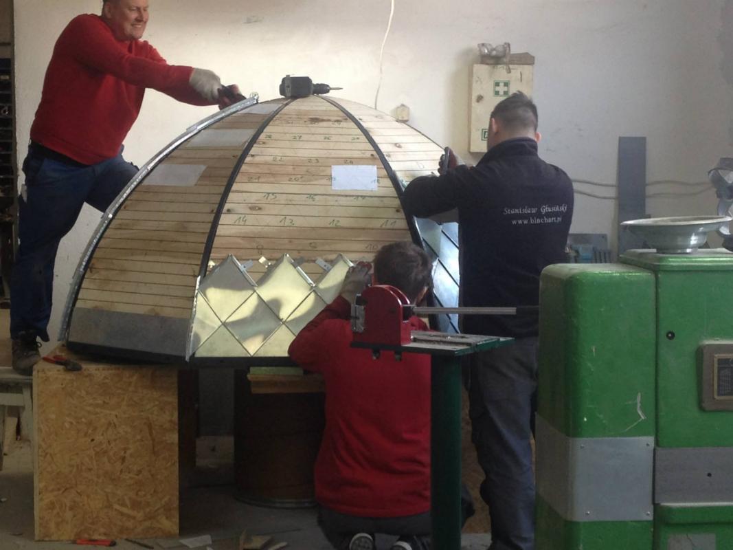 интересный ход но подойдет только в том случае когда чердачек не жалко. я дважды делал круглые кровли и оба раза в жилой мансарде :( изголялись делали круглые стропила сегментами, однажды собирал конусные башни и там между стропилками вставляли сегменты для сплошного настила вертикального. такие варианты куда нить в библиотечку в качестве шпаргалки насобирать бы