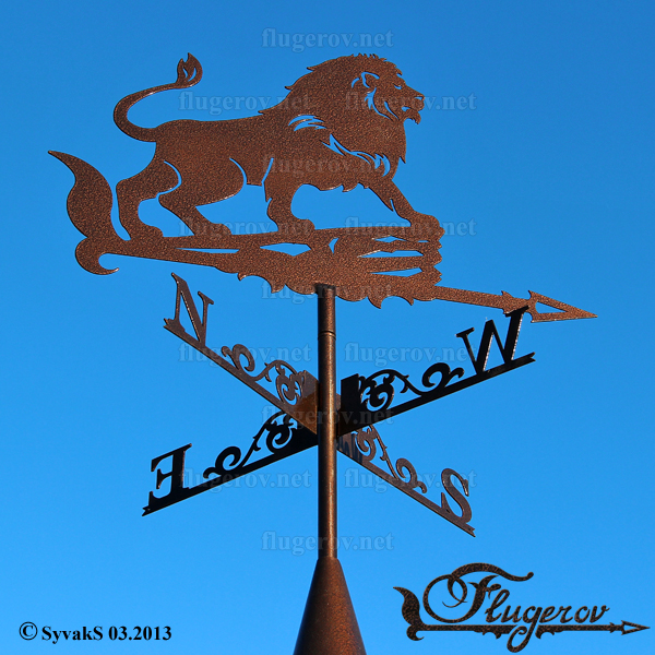 Преимущества наших изделий: 1) высокоуглеродистая холоднокатаная сталь (толщина 2 мм); 2)лазерная резка; 3) грунтовка цинкосодержащим порошком; 4)порошковая покраска; 5)покрытие защитным атмосферостойким лаком; 6) уникальная конструкция механизма вращения (опорный шарик и роликовый подшипник), позволяет вращаться флюгеру даже при самом слабом ветре, без скрипа и не требует постоянной смазки; 7) защитно-декоративный конус (защищает место врезки флюгера от попадания влаги). В комплекте с флюгером предлагается крепления на конек или башню. Весь ассортимент флюгеров вы можете посмотреть на сайте Заявки принимаем на сайте flugerov.net Доставку осуществляем в течении 7-10 дней!