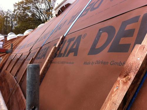 Несущий бетонный свод утеплён минеральной ватой и защищён диффузионной мембраной DELTA-FOXX.