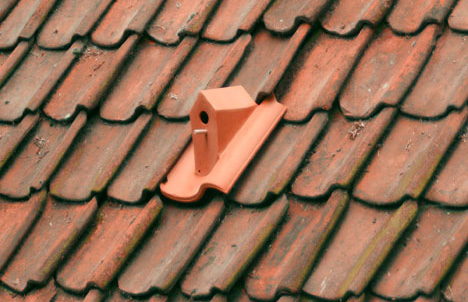 Эти домики для птиц были разработаны Классом Киукеном. Они располагаются на черепице, легко встраиваясь в уже существующую крышу. Края конструкции ничем не отличаются от стандартных, что и определяет удобство замены элементов.