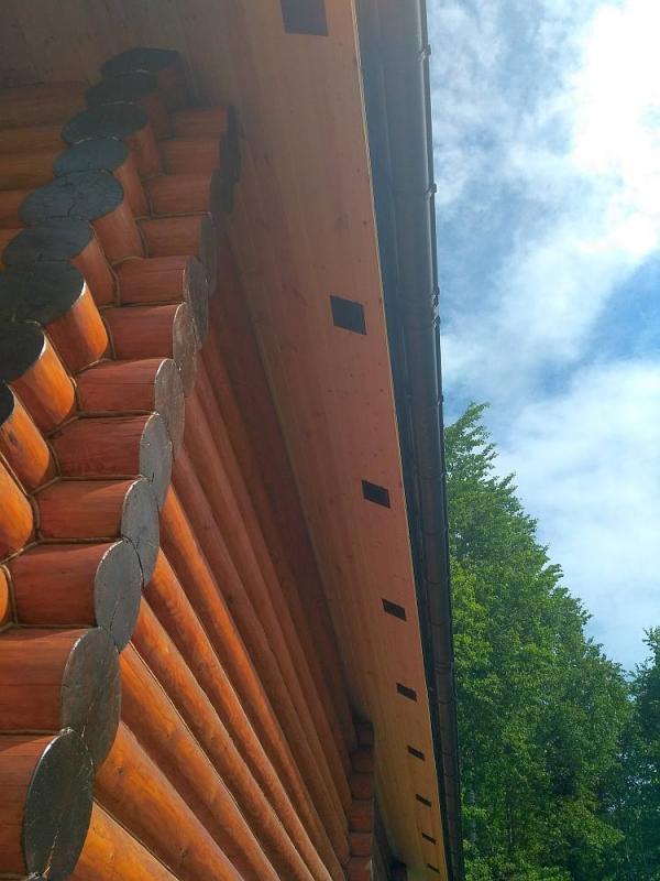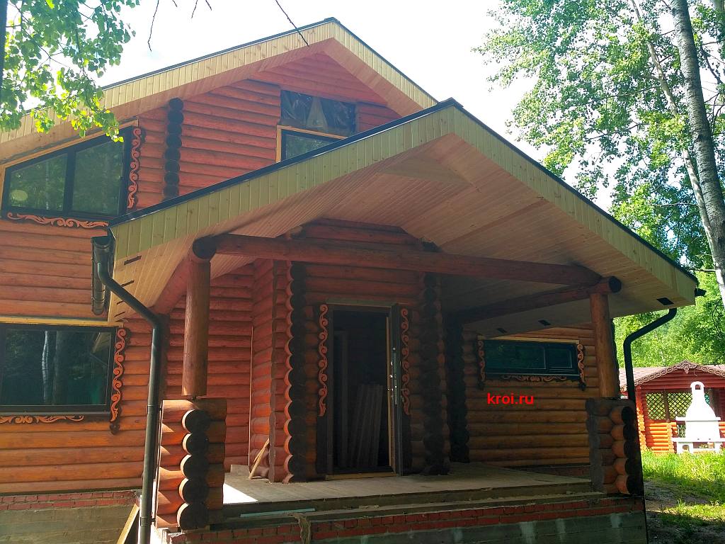 На этот симпатичный брусовой дом так и просилась вагонка на карнизные свесы. Полторы недели работы и вуаля!