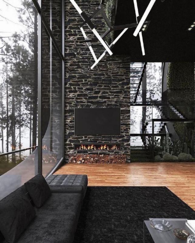Дом с летней террасой, гаражом на несколько машин, большим панорамным остеклением. Двухэтажный дом рассчитан на проживание большой современной семьи.