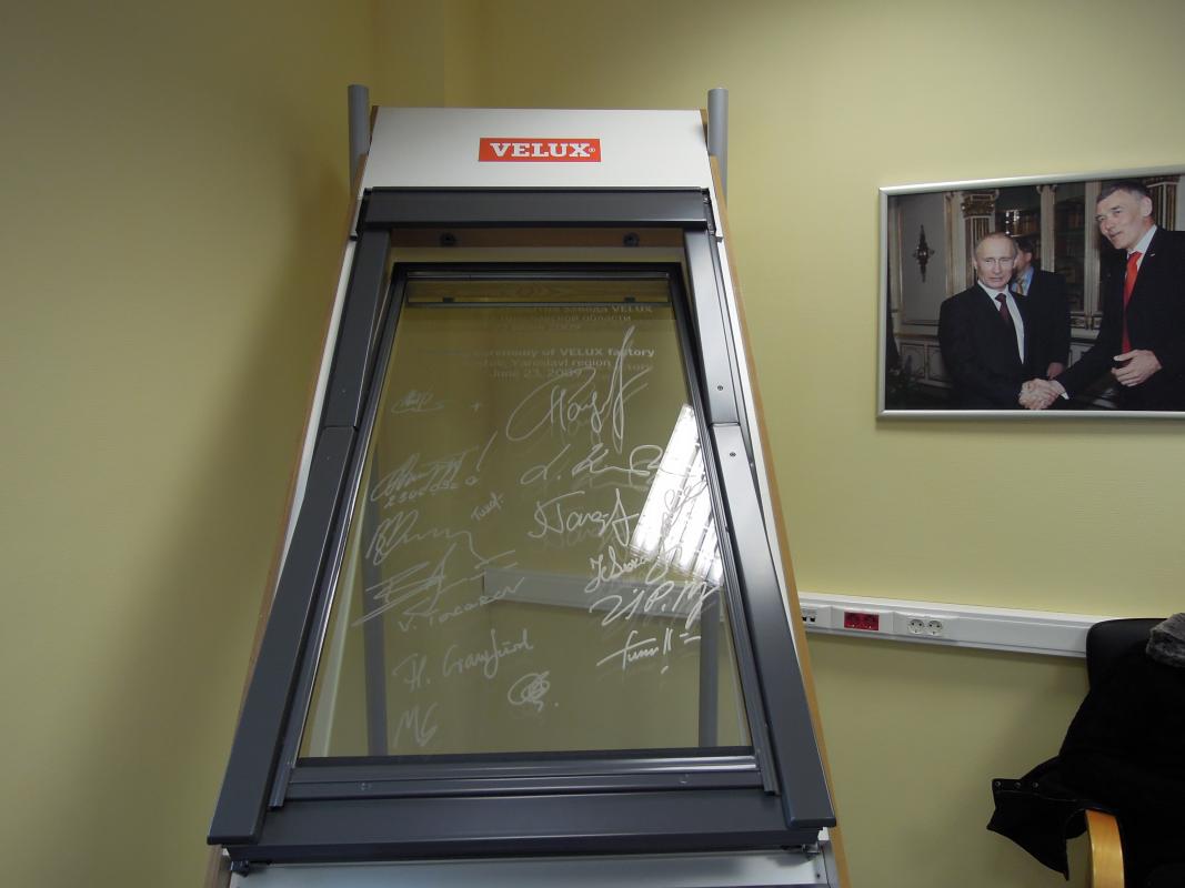 Кратко о заводе (если у кого-то будет желание добавить информацию, пожалуйста). Завод работает на российский рынок. Производит две основных модели - GZL и GGL. В будущем Велюкс планирует застроить огромные территории и расширить свое производство. По-моему, всё продумано заранее до мелочей. На заводе постоянный контроль климата, уровня шума. Большое внимание уделяется безопасности. На момент нашего посещения, был 1002-й день без происшествий.
