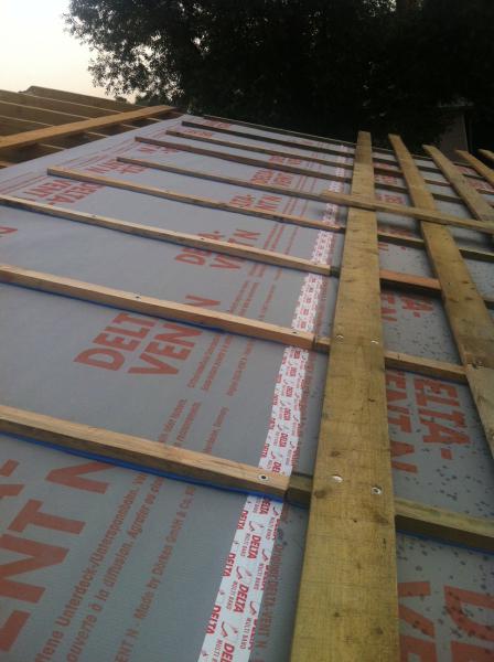 российских условиий между досками сплошной обрешетки оставил