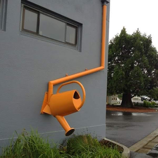 Парочка симпатичных фото с варианами оформления водосточной системы попалось в сети. Можно самому сделать с лейкой и с тучей.