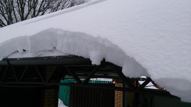 Слой снега в этом году не слабый! Мной замечено, что с гибкой черепицы вообще не сходит.