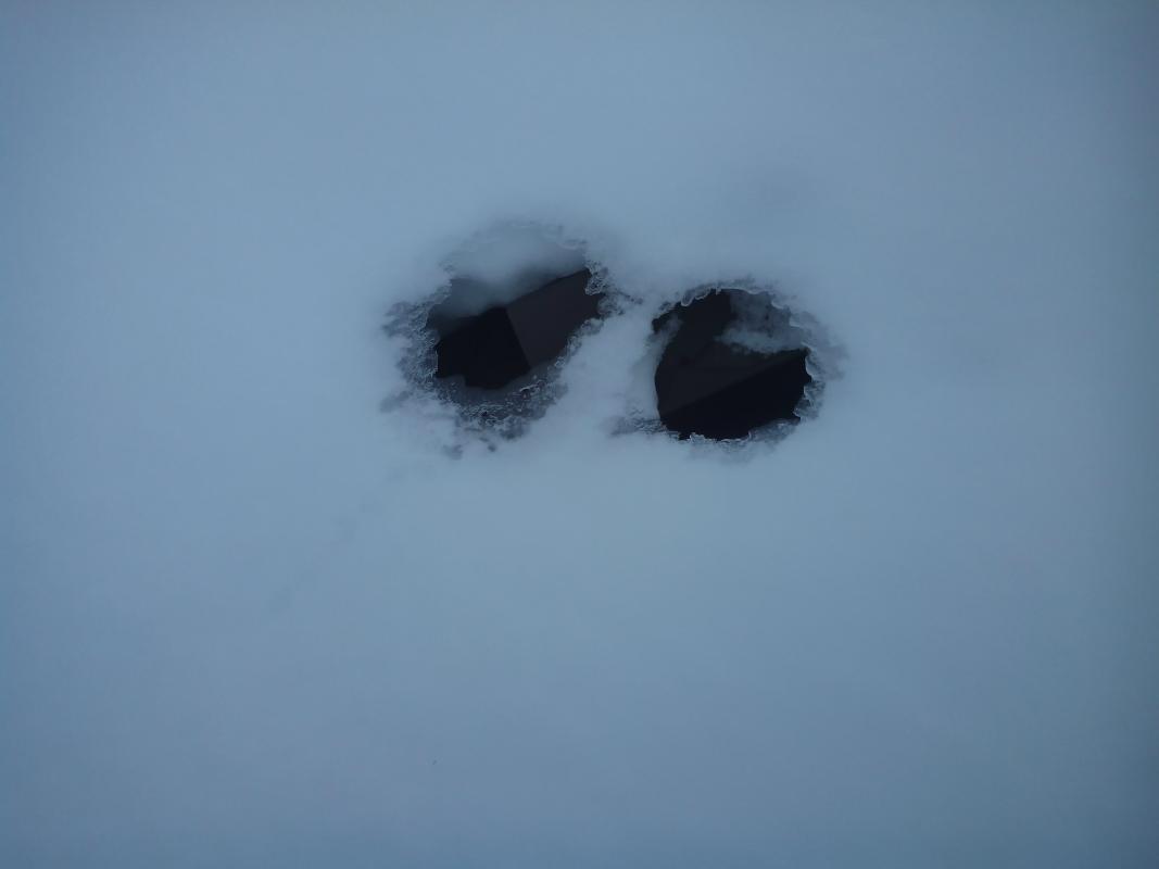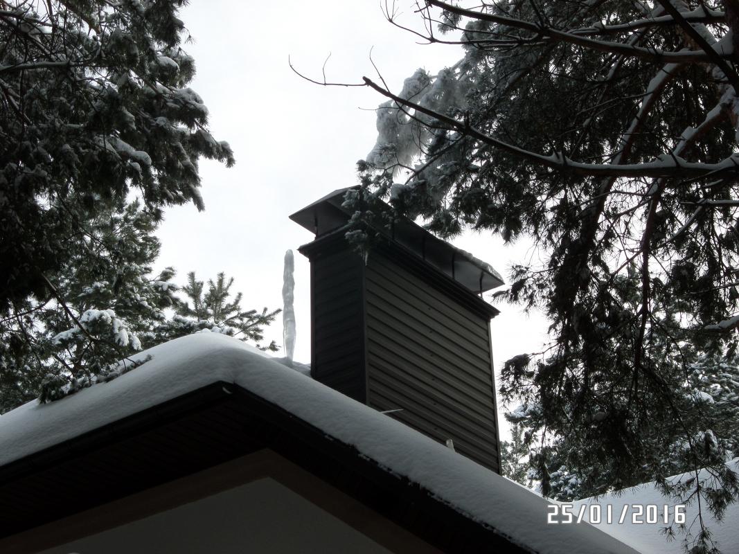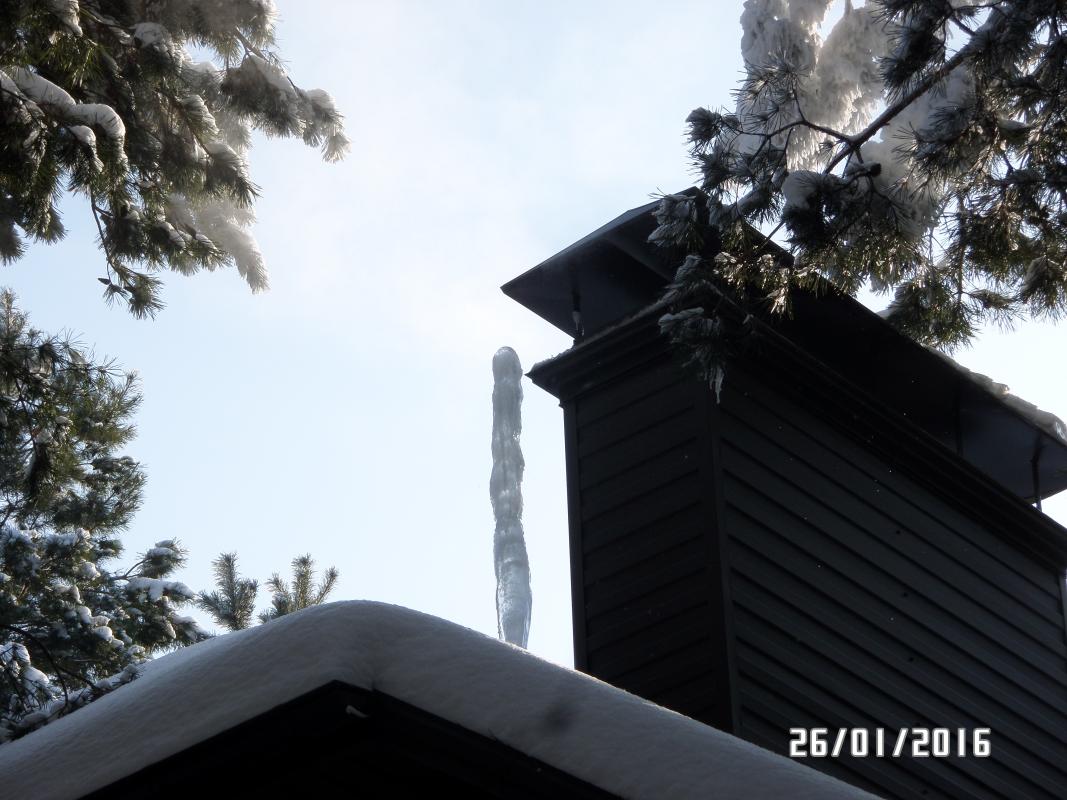 Ниже сход снега с небольшой кровельной конструкции. Правда, над ней еще навес(верхнее фото), тоже из поликарбоната.