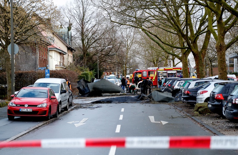 В Европе разбушевался ураган, скорость ветра достигала до 140 км/ч, т.е. до 38,8 м/с, что по шкале Бофорта собственно "ураган". Фото сохранил с новостного ресурса. Обратите внимание на сорванный рубероид с плоских крыш и состояние скатных крыш из натуральной черепицы.