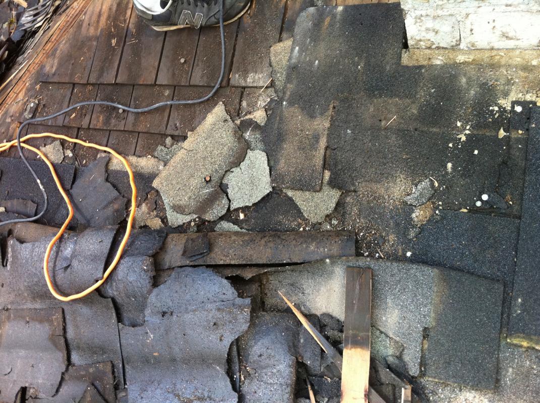 этой гибкой черепице было 15 лет (той, что сверху...), под ней еще слой такой же + слой деревянной кровли.