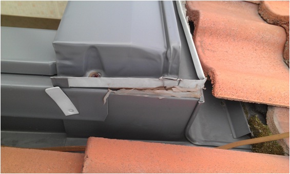 Случай третий. Оклад мансардного окна почти по всему периметру лежит поверх кровельного материала. Спасибо, хоть верх закрыли. Хотя, как известно, боковые элементы также должны быть ПОД кровлей, а не наоборот.