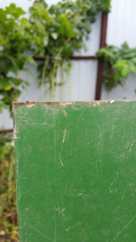 Производитель металла - Corus (покупался в Металлисте), покрытие полиэстер, толщина 0.5 мм. ЧТО СТАЛО С МЕТАЛЛОМ И ПОКРЫТИЕМ ЗА 12 ЛЕТ И ЗИМ НА СЫРОЙ ЗЕМЛЕ!