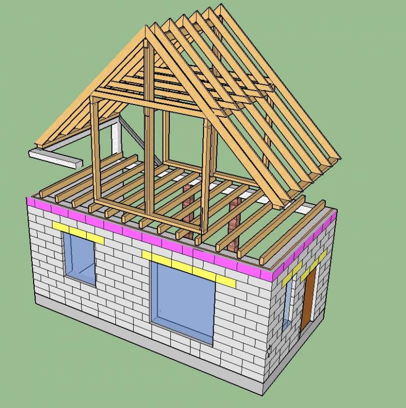 Пристройка П-образная (с замкнутым армопоясом) поэтому основная задача снять распор со стен под мауэрлатом примыкающим к дому (связь будет через деформационный шов).