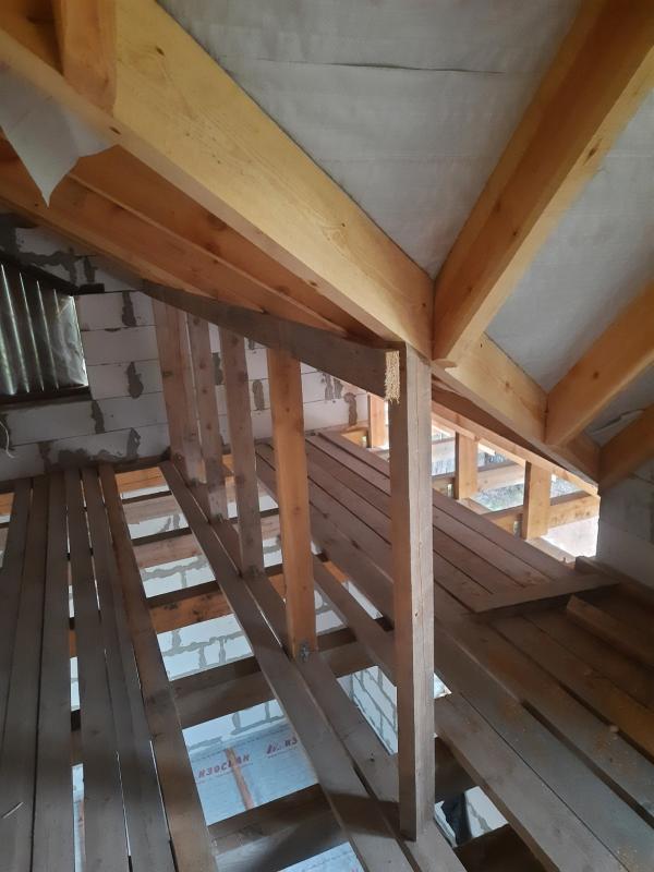 Возник собственно вопрос , по конструктиву этой кровли, допустима ли такая страпиловочная система (как на фото) Эти самые страпила имеют подпорки только внутри мансардной части , а на их концах, крепятся лишь на гвозди и усиленые уголки (с боку , а не поверх). В интернете такой технологии я увы не нашел , а строители уверяют, что так они уже делали и что бы я не переживал. Может я зря переживаю?? Или же так не стоит оставлять? Подскажите на сколько это технически правильно или нет. И если же это критично , может можно как то исправить положение усилив конструкцию , возможно шпильками или доп подпорками, что бы отделаться так сказать малой кровью . И к слову говоря , почему я вообще на этом заострил внимание , немножко углубившись в тему утепления, а так же правильного " пирога" перекрытия, я обнаружил, что ветрозащита, которая постелена под кровлю ,является пароизоляцией "изоспан D" которая как я прочитал у производителя на сайте , предназначена для неутепленных , нежелых кровель. И как я понимаю , мне её придется полностью демонтировать и заменить на подходящий для этой задачи материал.