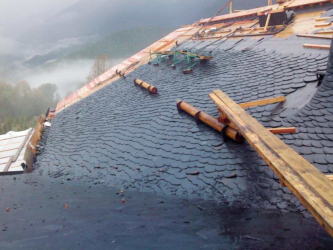 Рубка сланца это цирк какойто грубые заготовкки делаем на складе потом поднимаем на крышу и подгоняем на месте, рубим на наковальнях которые помещаются на куске бревна в "спецлотке" которые постоянно опорожняются подсобниками что бы много несыпалось на крышу при рубке, затея придумана не нами, и усложняет как процесс работы так и скорость сокращается, вообще насколько я понимаю чем больше строительство и финансирование тем больше бардака и разного рода безрасудства, много что проходит не так как хотелось бы и качество многих материалов желает оставлять лучшего, всему (начальству) насрать на технологические процессы, в общем делаем из говна конфетку (как всегда) вопреки всем козням наших "партнеров" Но есть и хорошее наблюдение наши родные российские специалисты кровельщики не уступают заграничным специалистам ни в чем ура товарищи! Ура! Тут уж не обидно за отечество, за организацию работ конечно неудобно перед нашими европейскими партнерами но для меня это тоже новый опыт в моем опыте строительства с 1999 года такого разгельдяйства я еще не встречал и на все объяснения "что это же стройка" я возражаю что сам на стройке больше 15 лет и мне не надо рассказывать что это такое, и при моем опыте в 95-98% все проходило замечательно и не вызывало столько эмоций негодования,Всем удачи!