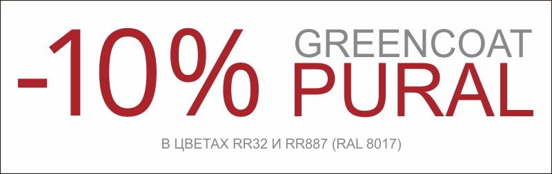 В рамках акции на 10% снижены розничные цены на продукцию в покрытии GreenCoat Pural в цветах RR32 и RR887.
