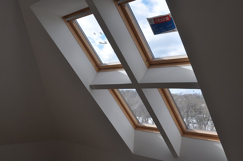 На втором фото большие, спаренные мансардные окна простой конфигурации. Помещение, благодаря им становится светлым и современным. Если поставить под ними кровать, то можно ночью смотреть на звезды.
