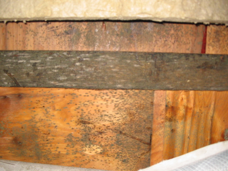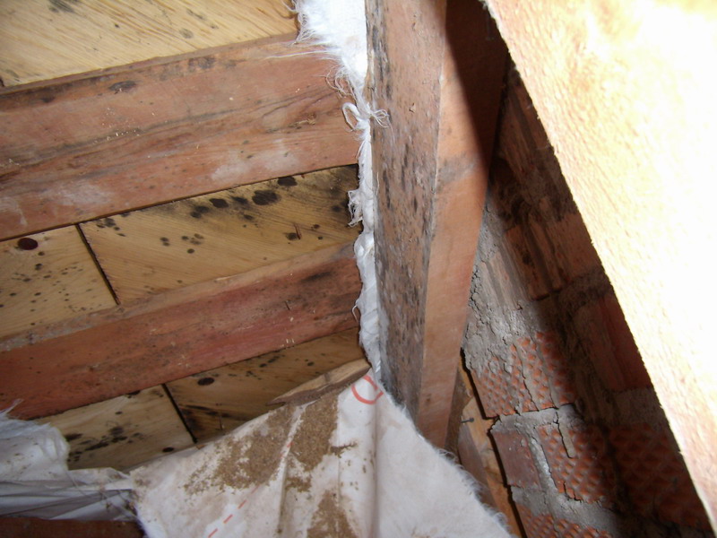 Как Вы обратили внимание там нет вент зазора. Карнизные продухи в виде решеток как в панельных домах с расстоянием в 2 метра друг от друга. И даже стоят аэраторы. Фанера уложена простая. Часто такое происходит под зиму, дом накрыли кровлей и приступили к внутренней отделке. С этого момента и начинается самое интересное . Повышенная влажность и соответственно конденсат не успевают выветрится, после чего фанера , доска и стропильная часть задыхается и образовывается ещё и грибок.