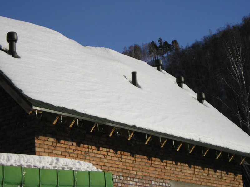 Вся вентиляция с другой стороны крыши.Кстати ,не жалею,что поставил высокие алипайки,низкие просто бы занесло снегом. Также есть вент.окна(плохо видно) для вентиляции конька.