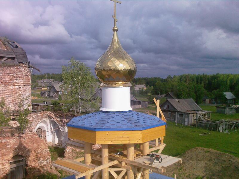На фото все культурненько выглядет, да еще и медь... и фальц присутствует.... НО шашка плоская... не айс, хотя если высота купола будет далековато от земли... то объем шашки и не увидишь! Хотя смотрю размер шашки не такой уж и большой, значит не высоко будут ставить. Посмотрите что у нас в пензе творят вручную из нитрит-титана на луковицах. Прошу обратить внимание на углы - они закругленные, потому как вручную гнут без станка. Все заказы на Мос.область идут, там все и монтируют ежегодно. Сделано и смонтировано осенью 2010 года.