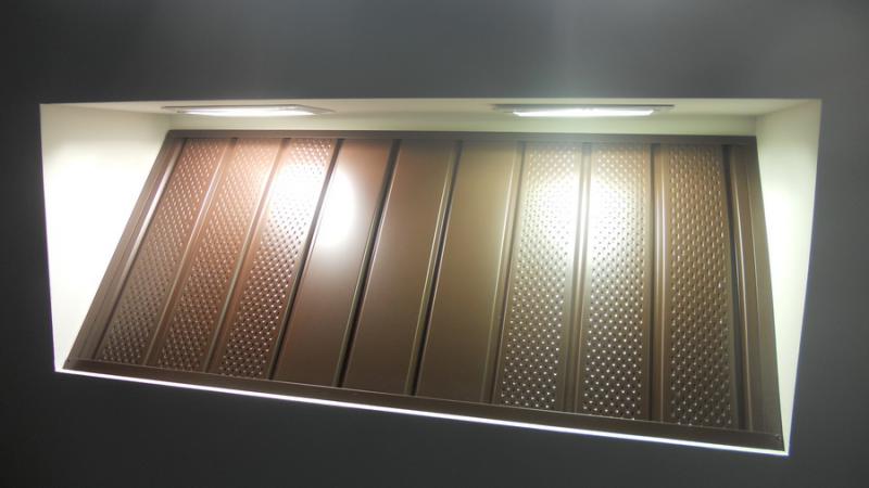 Единственный стенд, который привлек мое внимание из всей выставки! факт! Цены на софиты пока не объявлены - материалы: сталь, алюминий и медь! Варианты исполнения: полностью и центральная перфорация, а также глухие софиты! Преимущества водостока перед другими участниками забега - перечислять не имеет смысла! Факты на лицо!