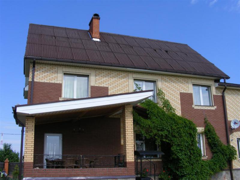 На основной части дома данный материал уже сняли... остался лишь козырёк, но со слов заказчика вид крыши повергал всех соседей в шок... настолько перекорёжило этот "апфдулин"