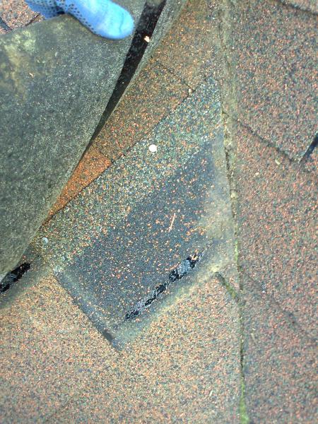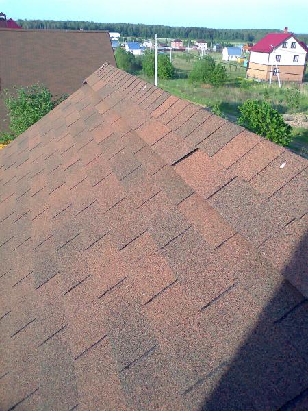 Делали гости из азии примерно 3 года может два года назад ,заметал что гвоздей нету ,их знаешь куда забивали ,в верхние углы гонта как при крутом скате ,а где нужно было прибить не прибили.Там еще пара фоток ендовы про клей говорить не приходится и гвоздики почти вплотную прибиты ,и парадоксально -не бежит водичка в дом.Вобщем там 5-6 крыш таких по поселку. Сейчас можно смеяться.