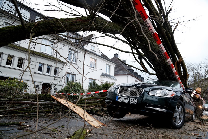 В Европе разбушевался ураган, скорость ветра достигала до 140 км/ч, т.е. до 38,8 м/с, что по шкале Бофорта собственно "ураган". Фото сохранил с новостного ресурса. Обратите внимание на сорванный рубероид с плоских крыш и состояние скатных крыш из натуральной черепицы.